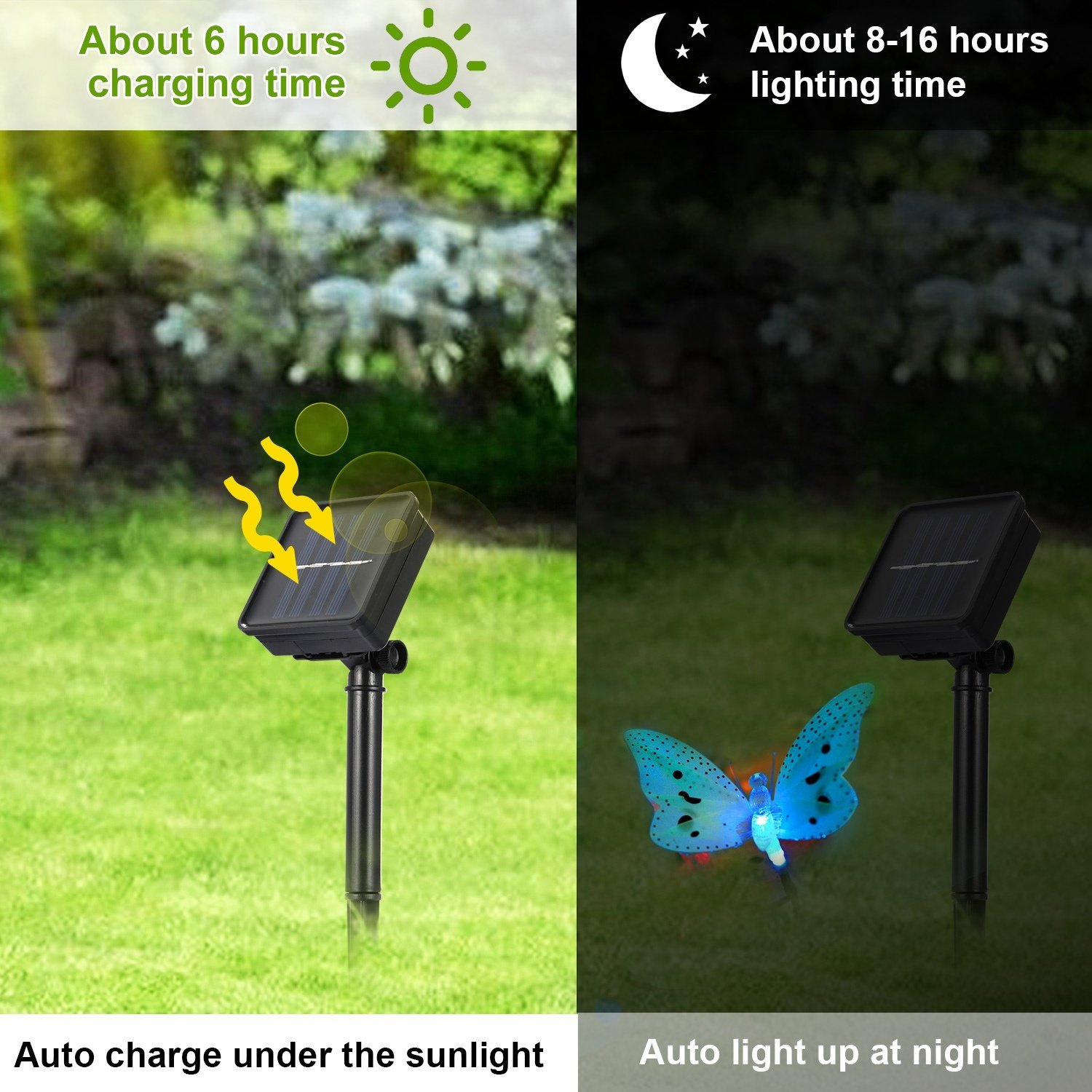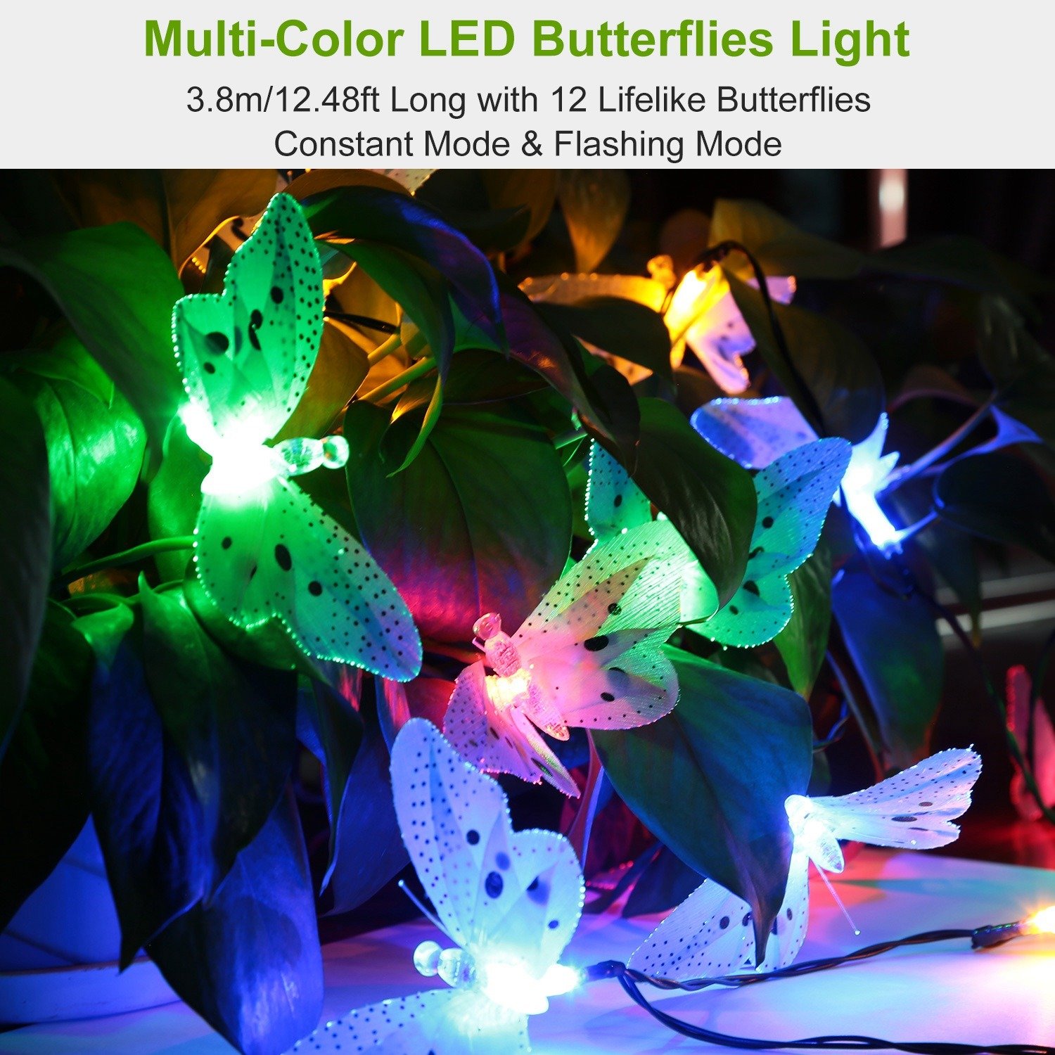 2 Pack Solar String Lights 12.48Ft 12 LEDs Butterfly Lights IP44 Waterproof Multi-Color Lights